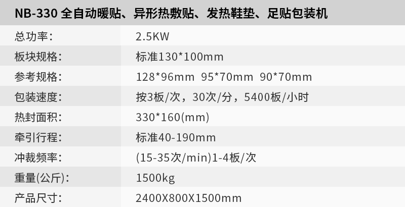 3.本机可以适用于输液加温器 暖宝宝 暖脚贴 膝盖贴 腰贴 肩贴等产品的包装